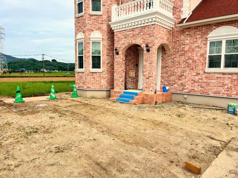 玄関アプローチ・土間コンクリート・フェンス・レンガ積み